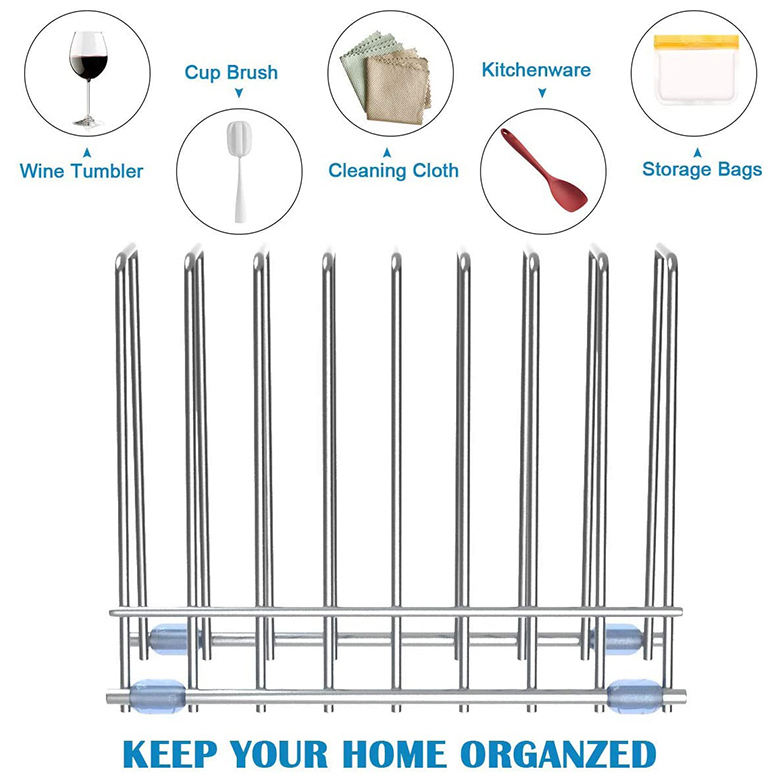 Support de séchage à roulettes en acier inoxydable, sacs de rangement réutilisables pour bureau, étagère de rangement pour dossiers