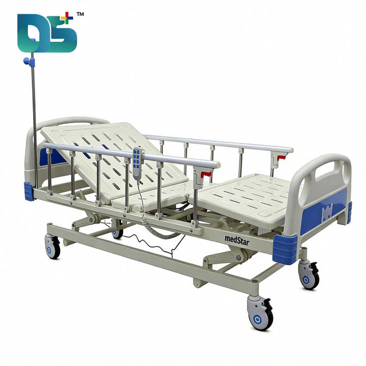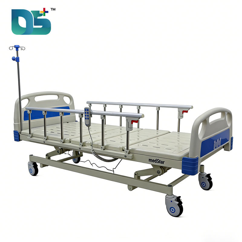 Lit électrique à domicile idéal pour les patients atteints de paralysie cérébrale, avec six colonnes en acier inoxydable et barres en aluminium pour un soutien stable