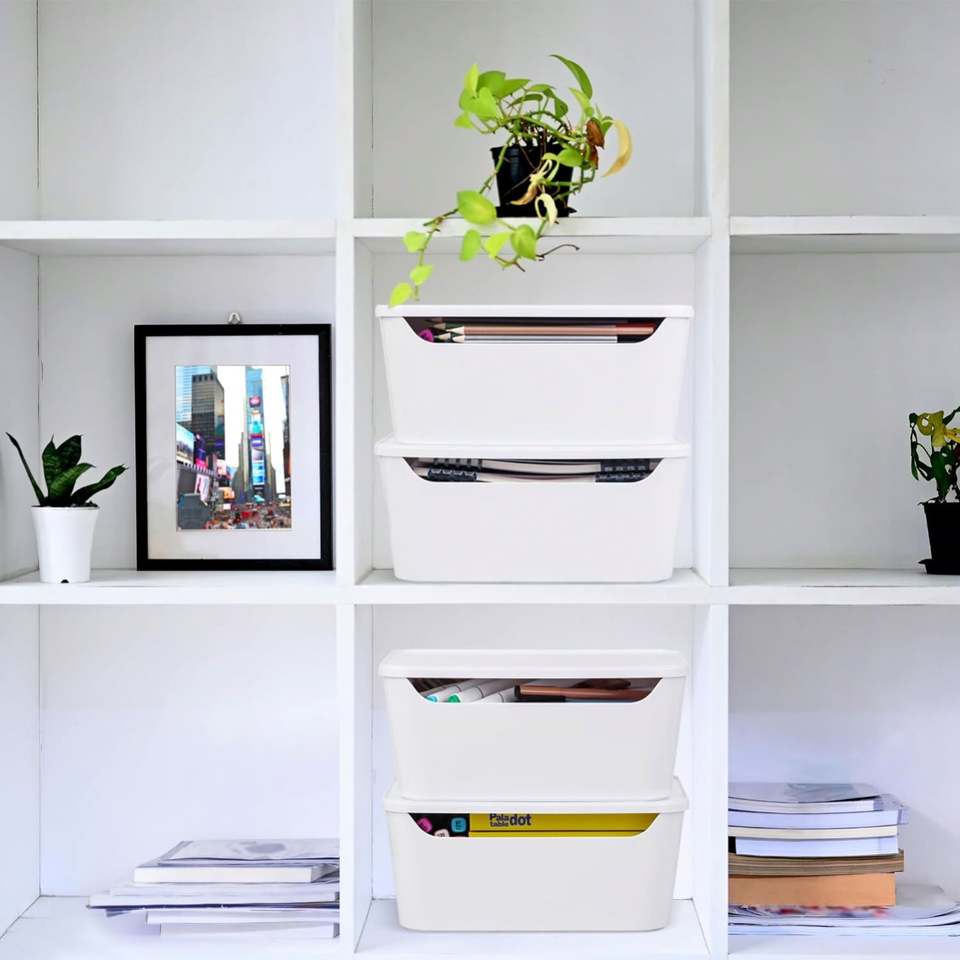 Organiseur de placard empilable, contenants de rangement en plastique avec couvercle, bacs organisateurs multi-usages pour armoire, tiroir, comptoir ou étagères