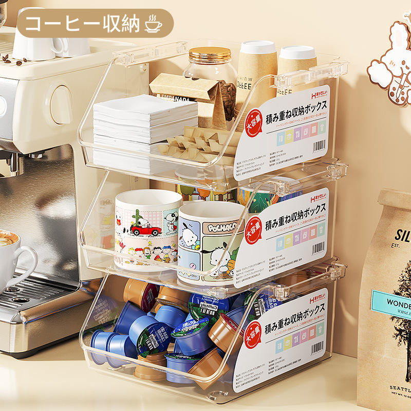 Stackable Desktop Storage Box Crystal Clear Plastic Organizer For Cosmetics And Miscellaneous Items With Handle Free Design