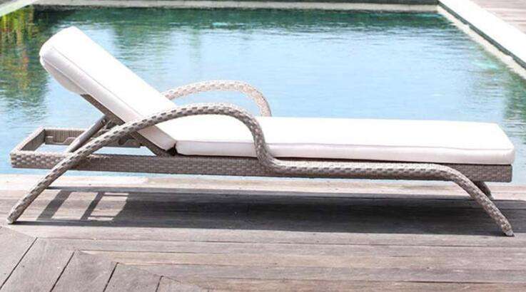 Chaise longue de jardin empilable en rotin extérieur, lit de soleil en aluminium, chaise longue de plage