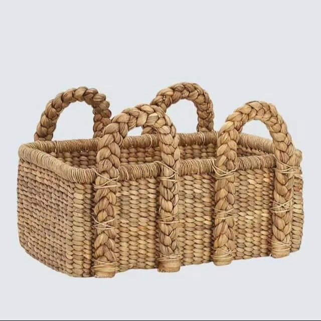 Plateaux de rangement empilables en jacinthe d'eau tressée à la main, écologiques, avec cadre en fer, organisateur moderne pour cuisine et salon