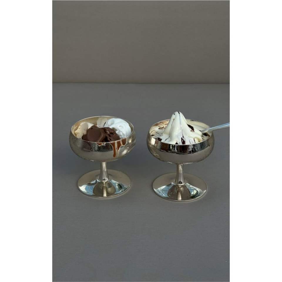 Stackable Metal Ice Cream Cups Durable Stainless Steel Pedestal Dessert Bowl Silver Sorbet Sundae Dish For Restaurant Catering
