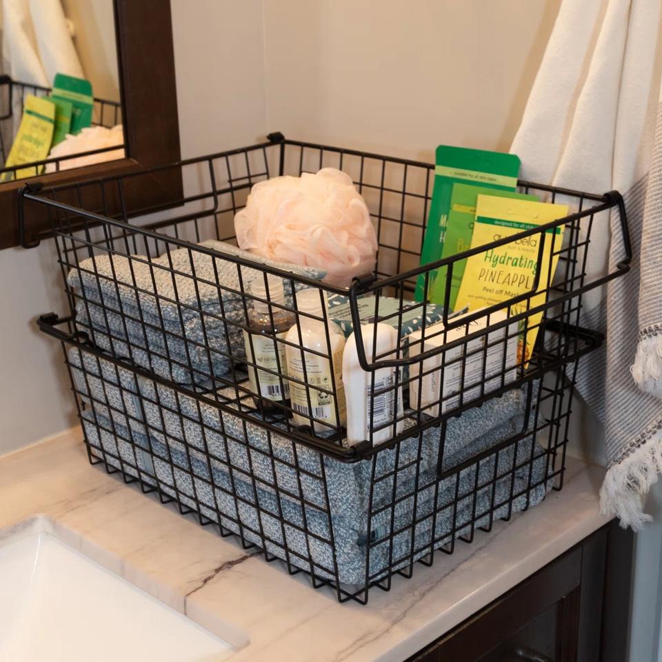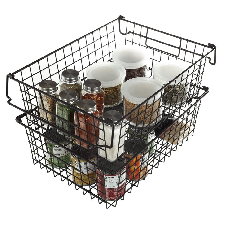 Panier de rangement empilable en fil métallique pour étagère de garde-manger, placard, garage – Solution de rangement