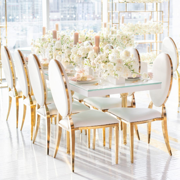 Chaise louis à dossier rond blanc, nouvelle collection de luxe, pour événement, vente en gros, couleur or et blanc