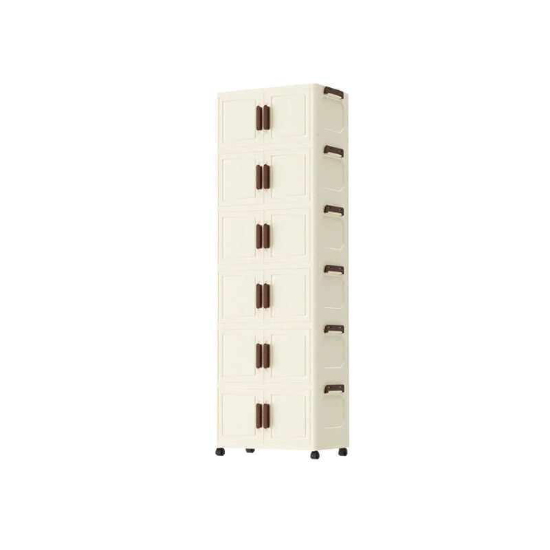 Armoire en plastique empilable avec portes blanches solides Roues pour chambre à coucher Salon Armoire de rangement en plastique
