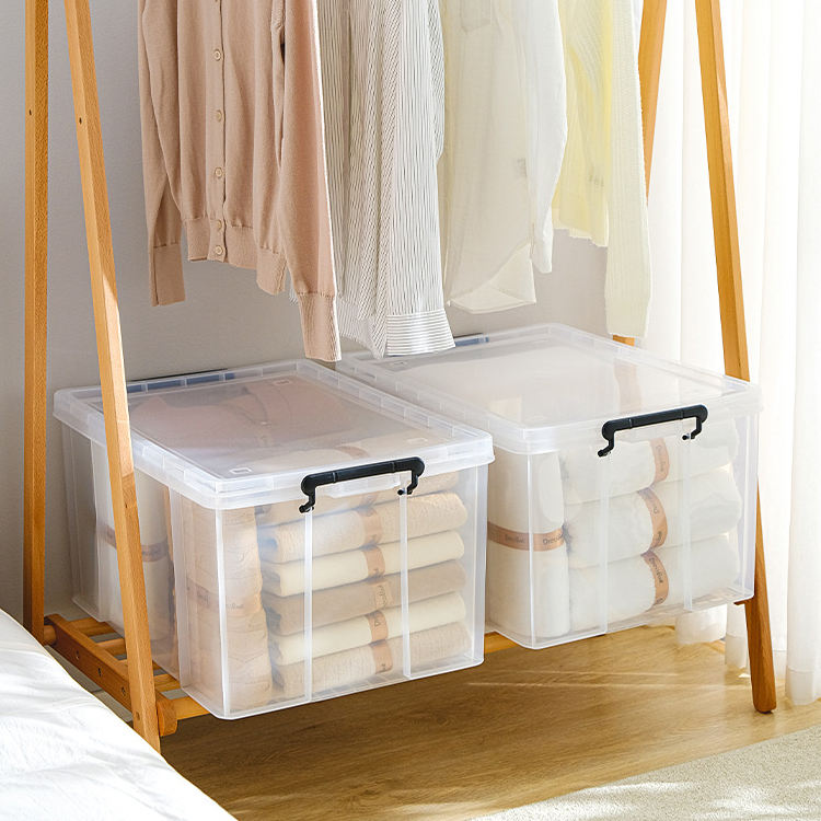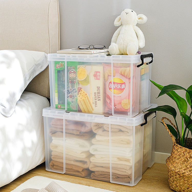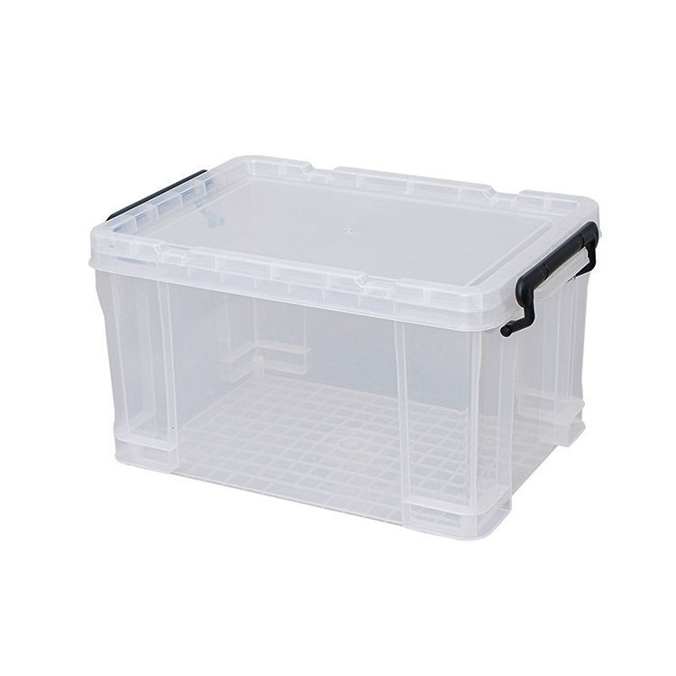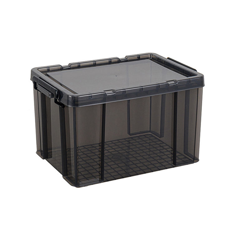 Boîte de rangement en plastique empilable, fourre-tout, couvercle durable et boucles de verrouillage sécurisée pour garage et base