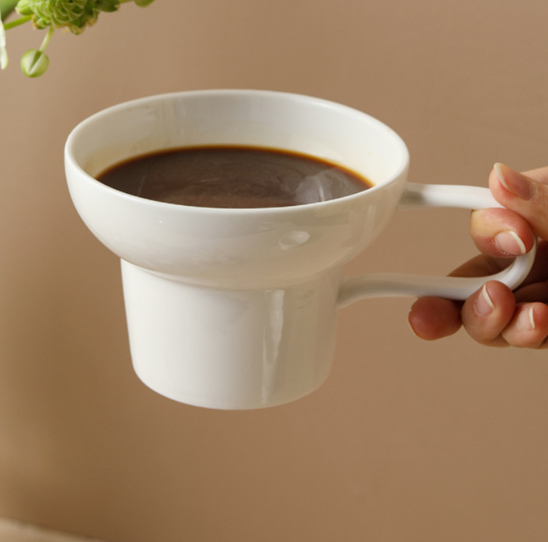 Ensemble de tasses à café en céramique blanche empilables, tasse à cappuccino minimaliste empilable avec poignée, vaisselle pour hôtel, café, restaurant, vente en gros