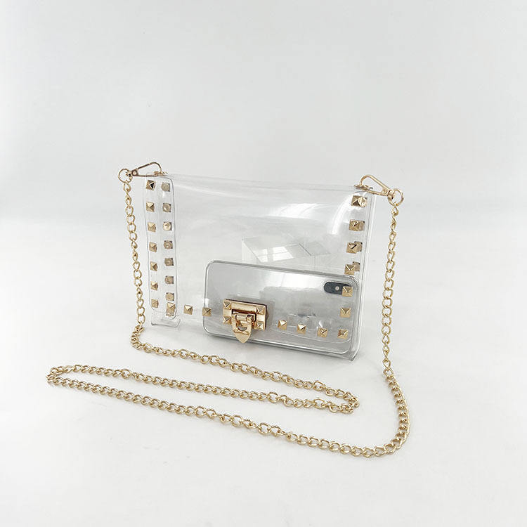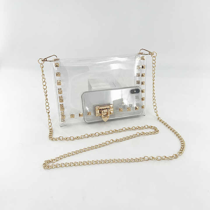 Sac transparent approuvé par le stade sac à bandoulière en PVC à rivets transparents Messenger pour les événements de concert de gymnastique