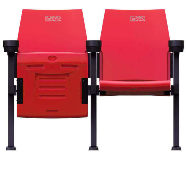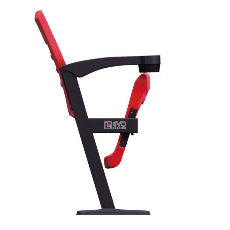 Siège:Coque en plastique moulé par soufflage reliée au pied et pliable