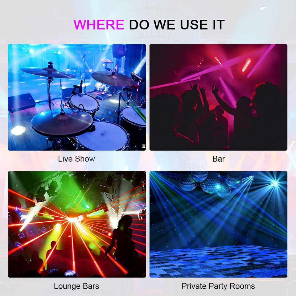 Effet et mélange de couleurs:Effet de faisceau RGBW + Effet laser RGB