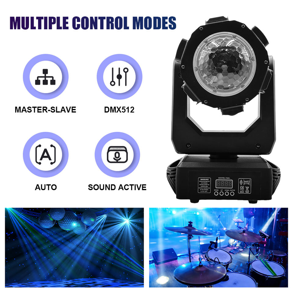 Prix d'usine 100W LED Moving Head Light RGBW Beam Laser Strobe Beam DMX512 Contrôle Sonore DJ Disco Club Bar Mariage Fête à domicile