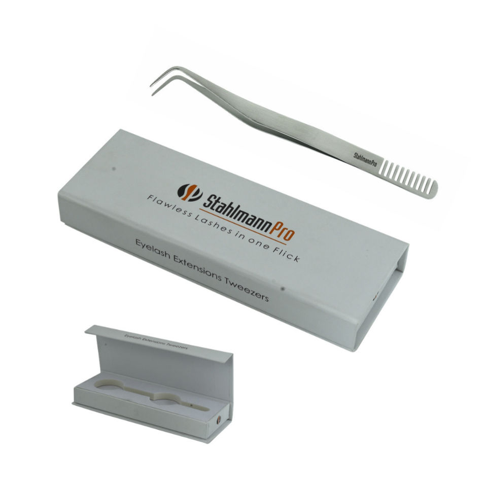 Pince à épiler pour extensions de cils Stahlmann Pro en acier inoxydable, type L, pointe longue, précision, application facile, peigne