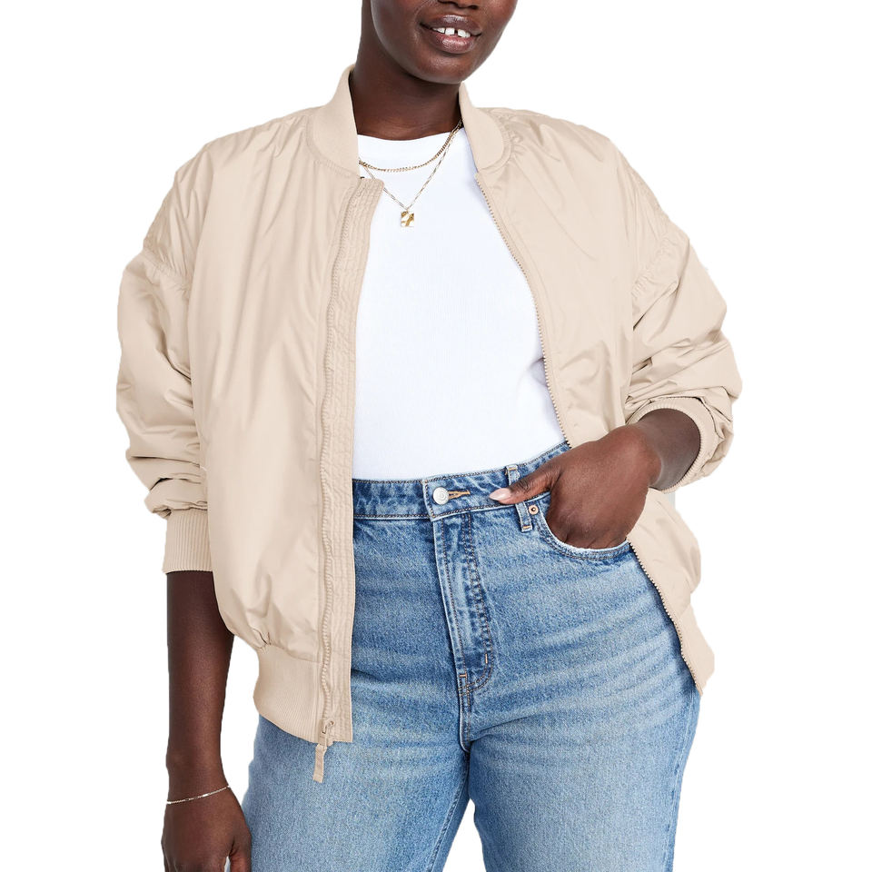 Tache Respirant Baseball College Varsity Veste Bomber Veste Meilleure Vente Femmes Bomber Veste Solide Couleur Femmes Street Wear