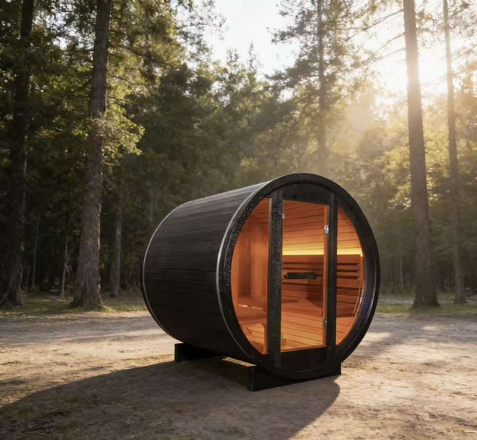 Sauna tonneau en bois massif, spa extérieur pour 6 personnes