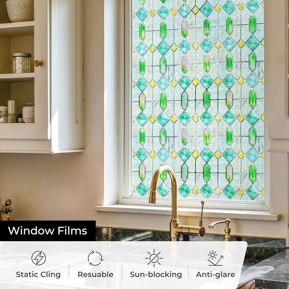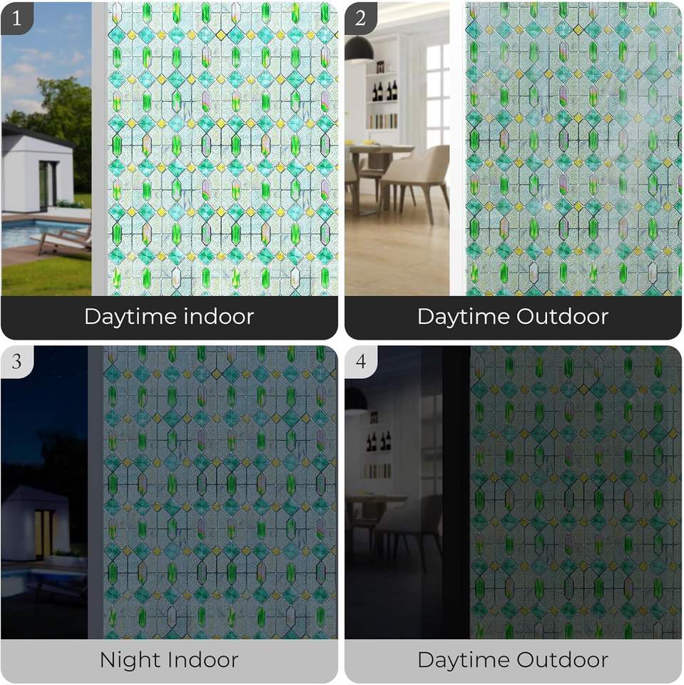 Film pour fenêtre en verre teinté, protection de la vie privée, blocage des UV, adhésif statique, rectangulaire, pour maison, cuisine, bureau, porte de salle de bain, 60x90cm