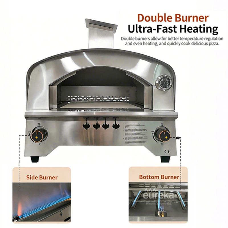 Four à pizza professionnel de petite taille pour l'extérieur, en acier inoxydable, 12 pouces, à gaz GPL