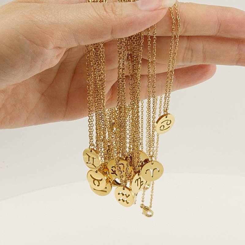 Collier pendentif en acier inoxydable plaqué or pour femme, motif 12 signes du zodiaque, bijou fantaisie ajouré, breloque horoscope, cadeau