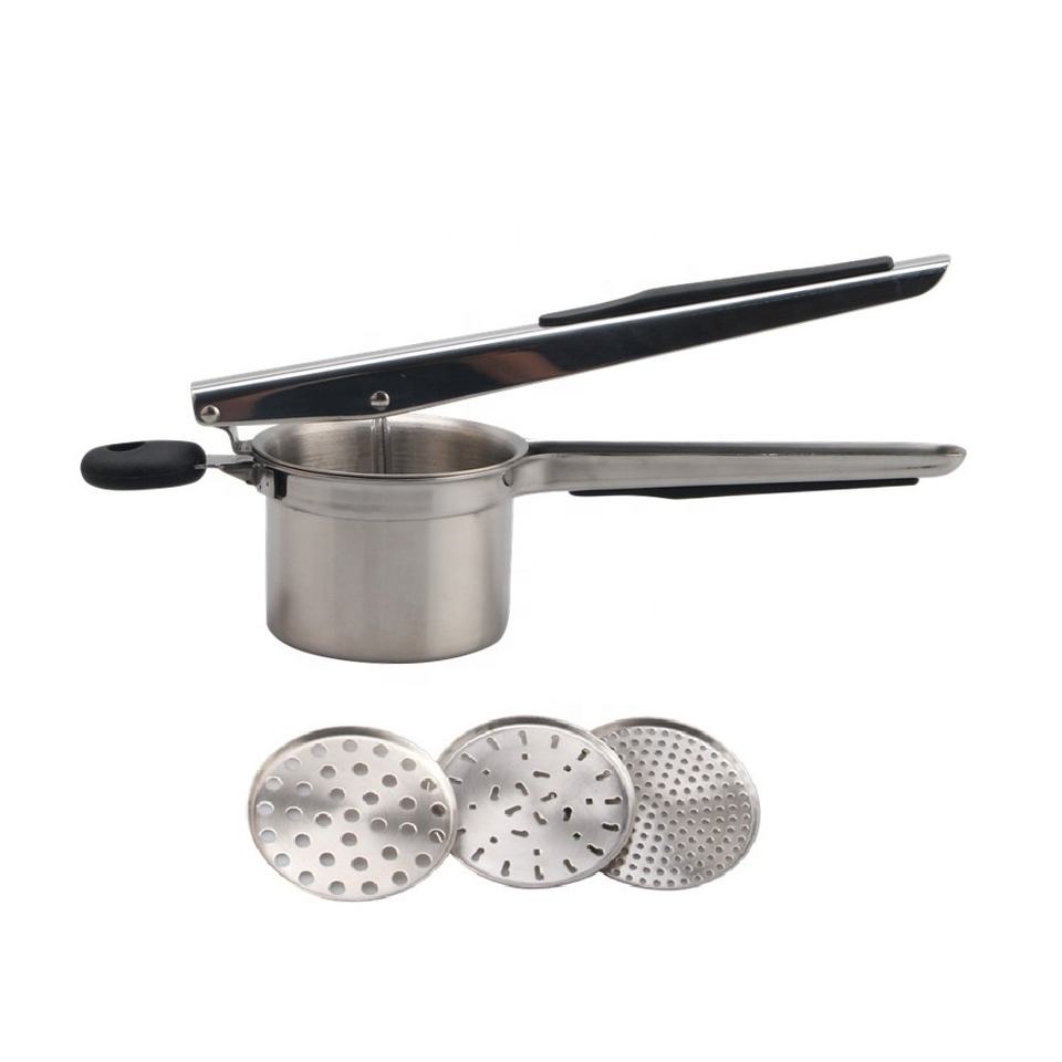 Presse-purée à pommes de terre en acier inoxydable de 15 oz, avec 3 disques interchangeables et poignée en silicone pour spaetzle