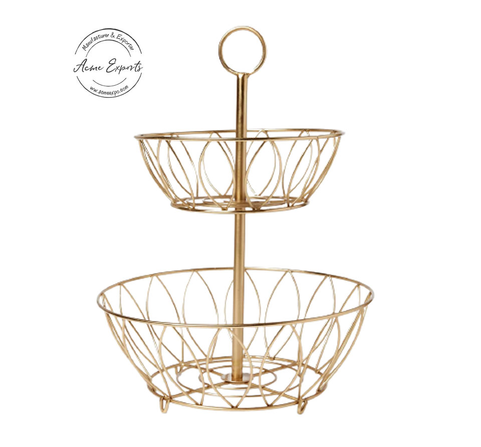 Organisateur de corbeille de fruits en acier inoxydable à 2 niveaux pour comptoir de cuisine Solution de stockage élégante pour fruits et légumes