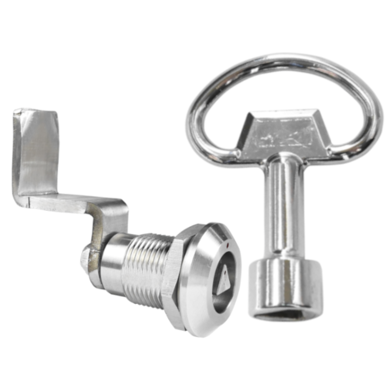 Loquet de compression à quart de tour en acier inoxydable 316 chromé avec déverrouillage par clé étanche pour armoires industrielles