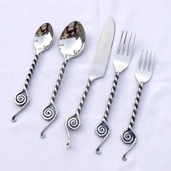 Couverts en acier inoxydable 4 pièces Ensemble d'ustensiles alimentaires Couteau de designer Fourchette Cuillère en acier miroir Cuillère à dessert Mariages Hôtel