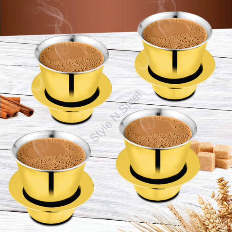 Dabra de café à double paroi en acier inoxydable 4 pièces dans un gobelet avec design doré CLASSIC Service de tasses à thé à double paroi avec poignée Han