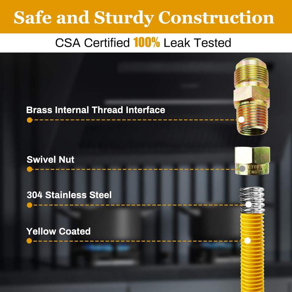 Acier inoxydable 5/8 po. OD (1/2 po. ID) Tuyau de raccord de sécheuse à gaz pour kit de ligne basse pression flexible de gamme de poêle de sécheuse