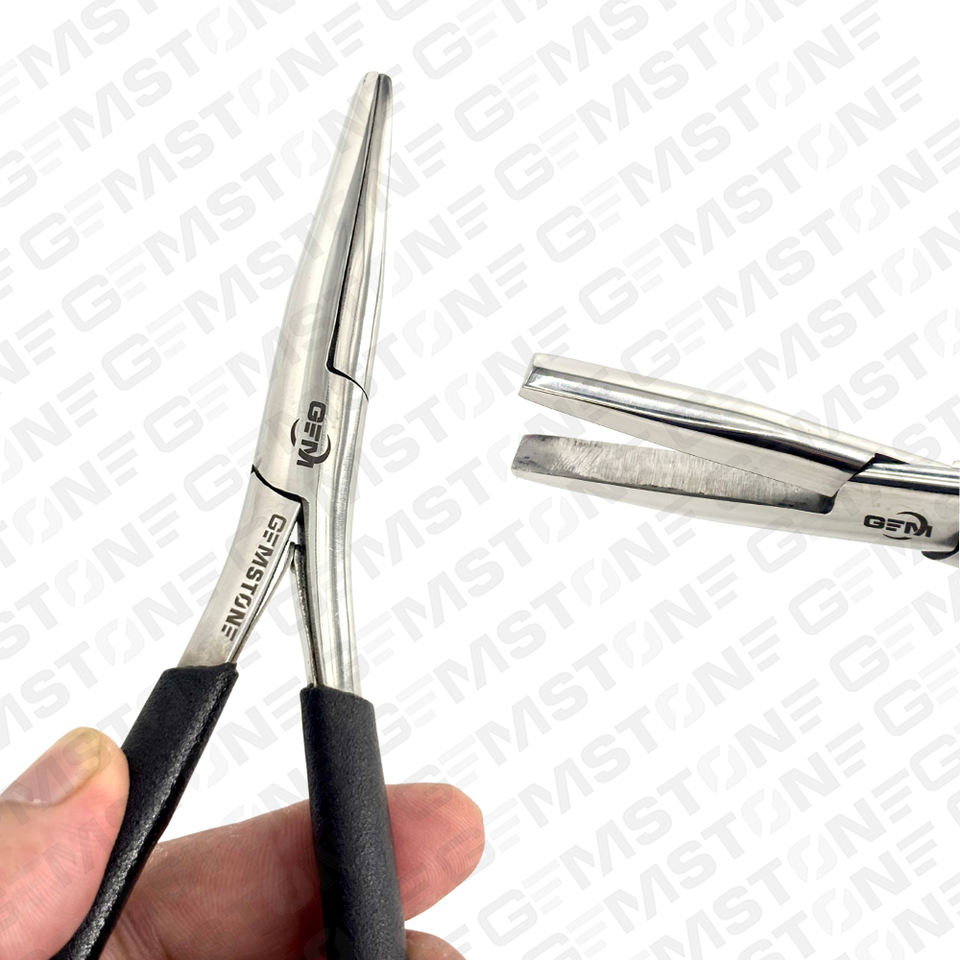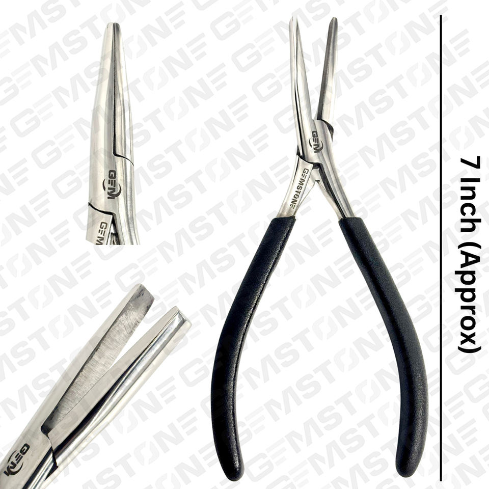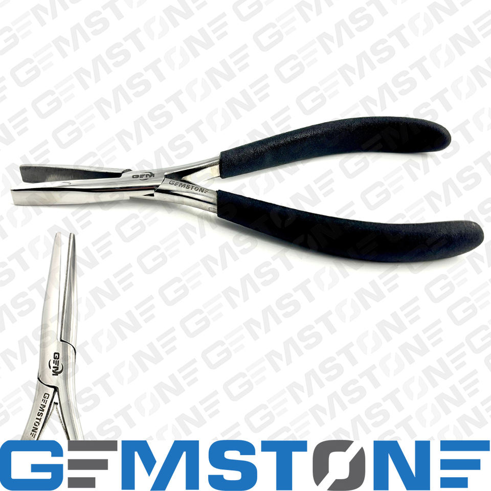 Pince à extensions capillaires en acier inoxydable de 7 pouces à bouche plate, poignée antidérapante noire, finition argentée, durable, réutilisable, usage commercial