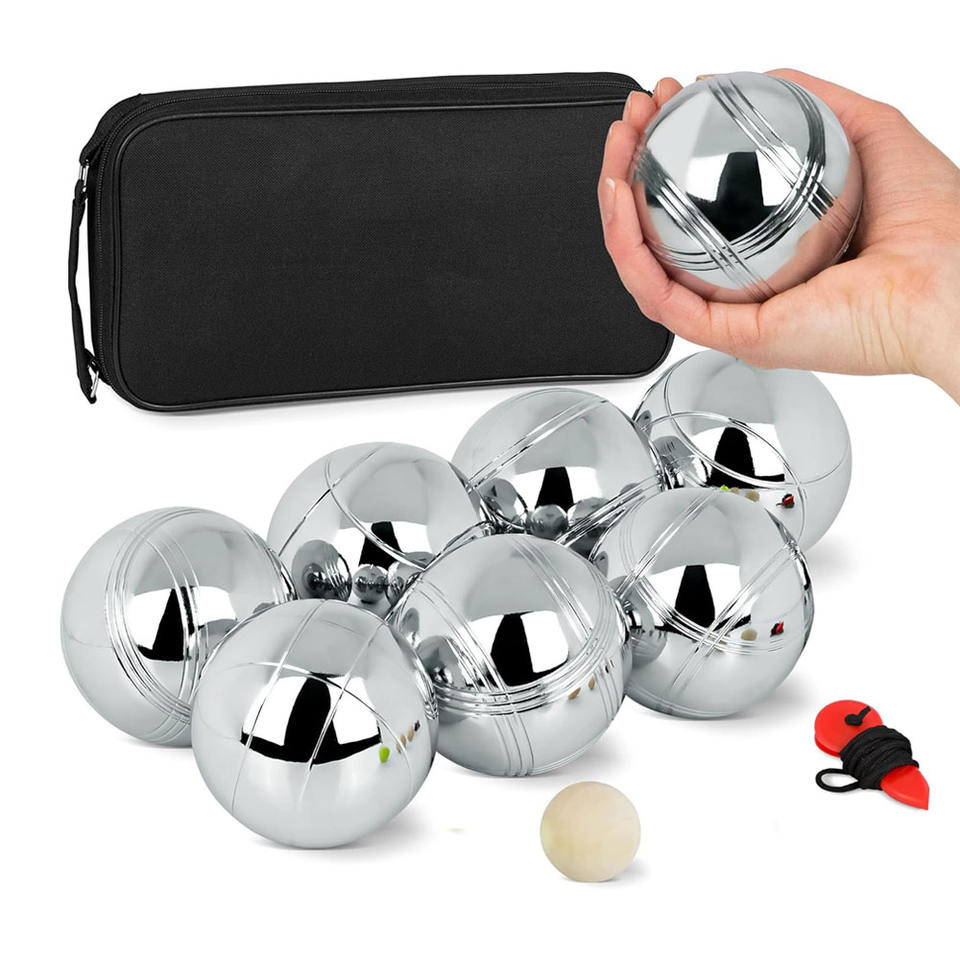 Set de Pétanque 8 Boules en Acier Inoxydable 72mm, Haute Résistance, Durable, Argent, avec Sac en Polyéthylène et Emballage Carton