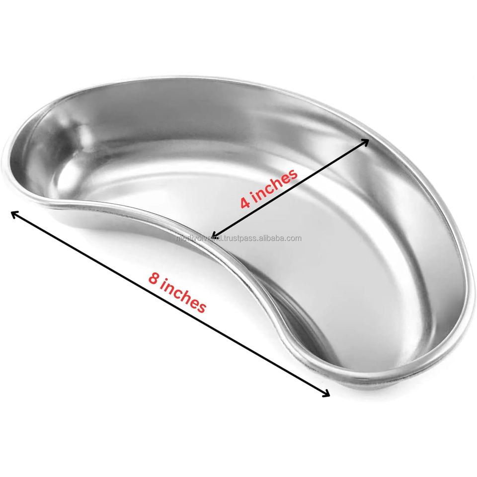 Spécification:8 Inch Stainless Steel Kidney Shaped Surgical Tray Reusable Medical Emesis Basin Autoclavable Utility Instrument Tray Polished Round Edge Basin