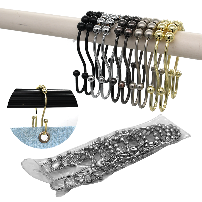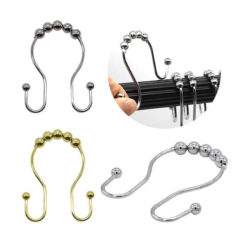 Accessoires de salle de bain en acier inoxydable antirouille, anneaux de rideau de douche, crochets double face