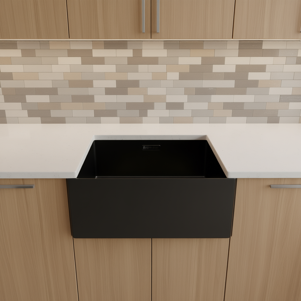 Évier de cuisine en acier inoxydable de style farmhouse, 24 pouces, cuve simple, finition noir mat gunmetal, facile à nettoyer