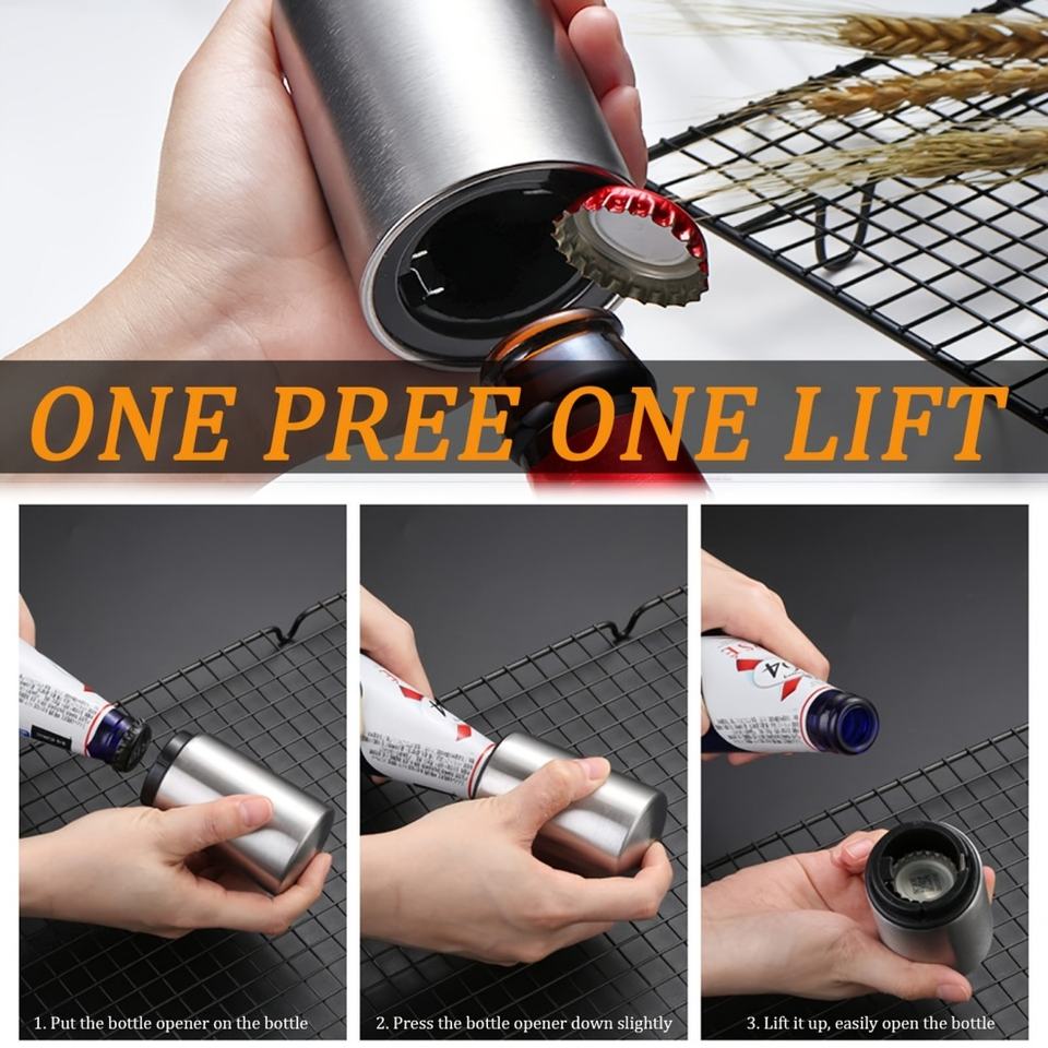 Ouvre-bouteille automatique en acier inoxydable avec récupérateur de capsules magnétique à pousser vers le bas