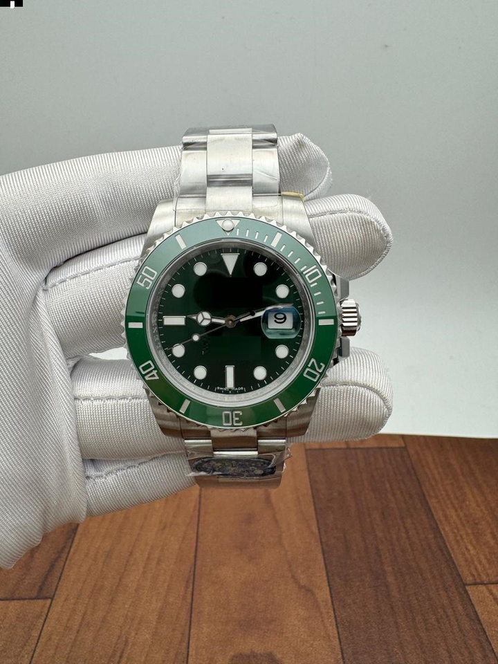 Montre de plongée automatique en acier inoxydable, haute qualité, édition limitée, cadran vert, lunette en céramique verte, mouvement ETA