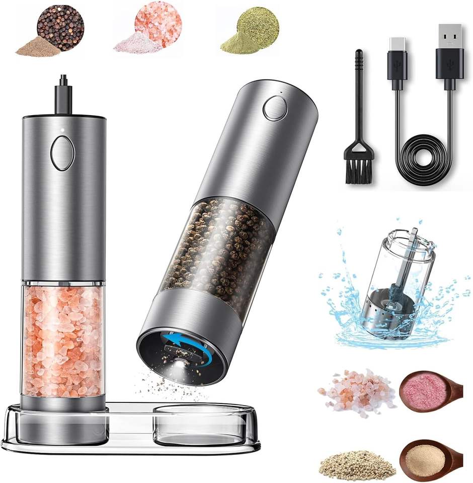 Ensemble de salières et poivrières électriques automatiques en acier inoxydable, rechargeables, avec réglage de la grosseur de mouture
