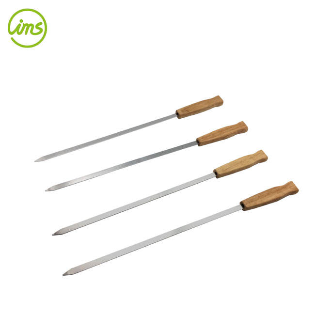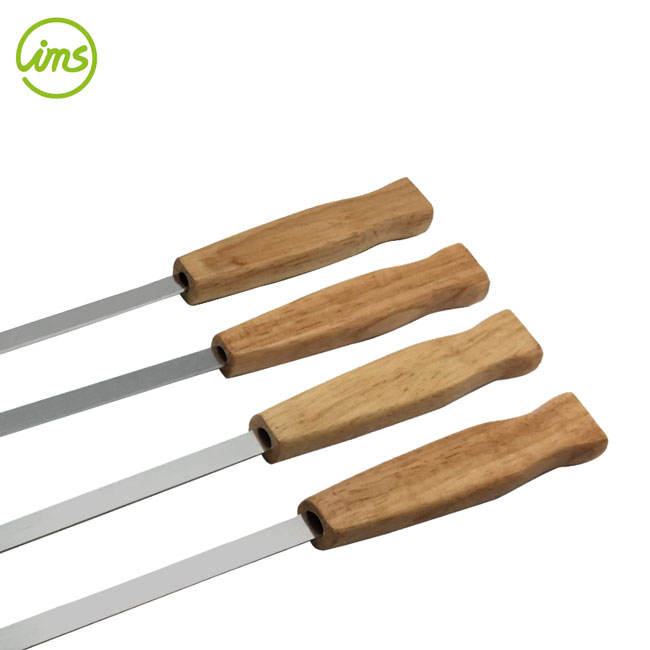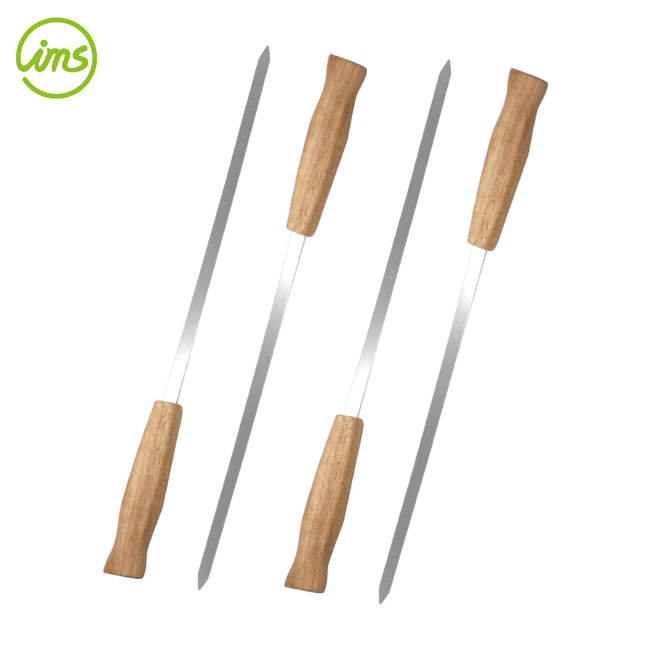 Jeu de brochettes pour barbecue en acier inoxydable, avec manche en bois, 24 pouces