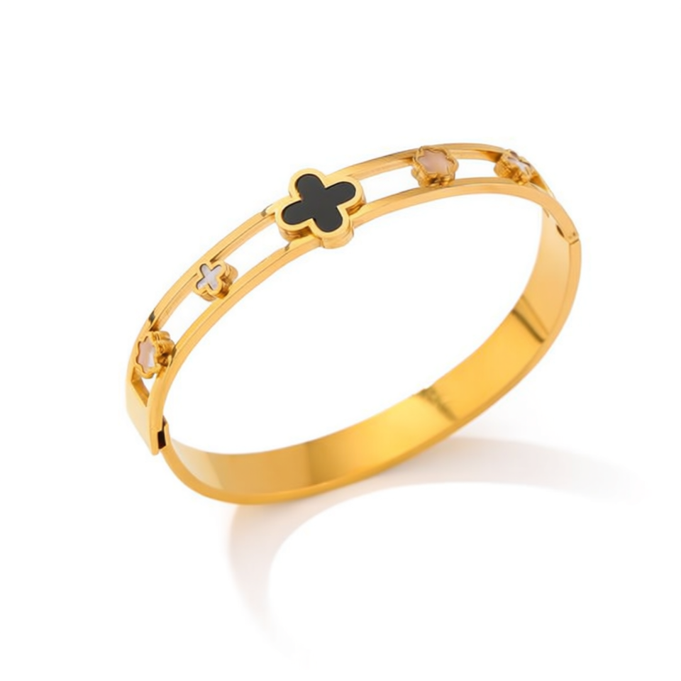 Bracelet en acier inoxydable, design floral à quatre coins, plaqué or, bijoux de mode