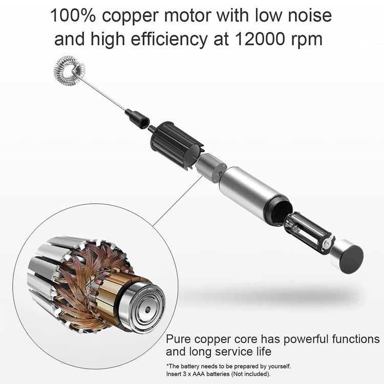 Mousseur à lait en acier inoxydable à piles, crée une mousse riche et crémeuse