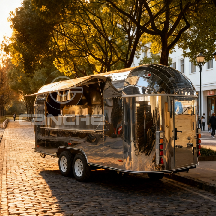 Remorque alimentaire en acier inoxydable, best-seller, mobile, restauration rapide, concession, café, glace, sandwich, camion à hamburgers, fourgon
