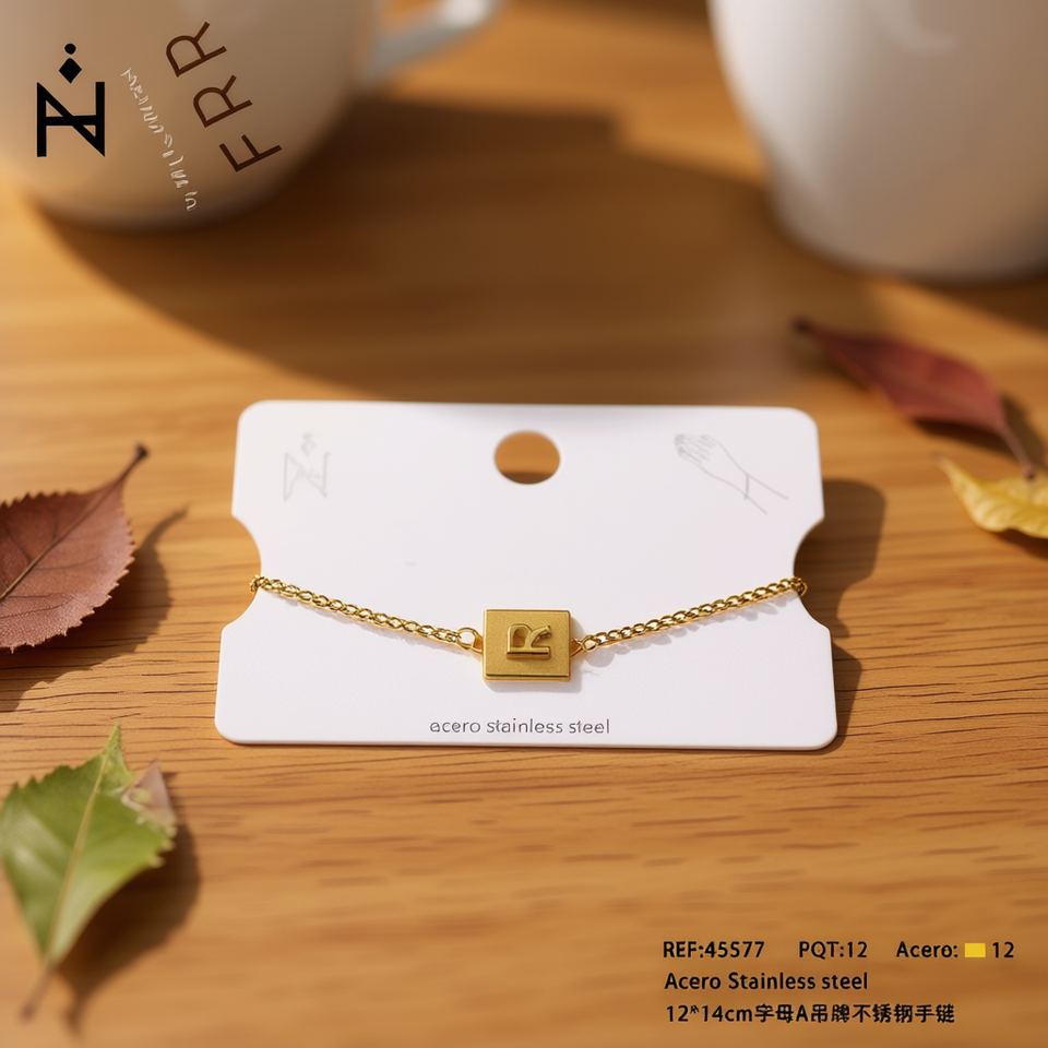 Bracelet en acier inoxydable 12x14cm avec pendentif lettre R plaqué or, bijou unisexe tendance, cadeau