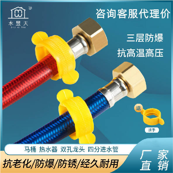 Tuyau tressé en acier inoxydable 1/2 pouce, flexible, pour chauffe-eau, robinet de toilette, tuyau d'entrée/sortie double extrémité