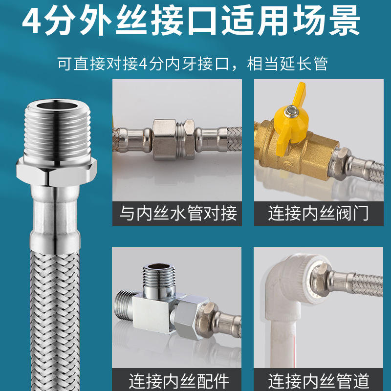 Tuyau tressé en acier inoxydable 1/2 pouce, flexible, pour eau chaude et froide, résistant à haute pression, pour plomberie