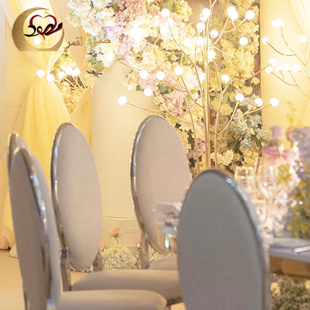 Chaise de mariage moderne en acier inoxydable avec pieds blancs et dorés pour les mariages au Ghana et l'utilisation hôtelière