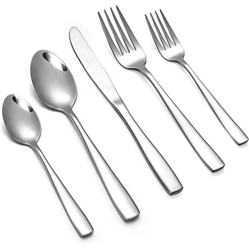 Ensemble de couverts en acier inoxydable brillant personnalisé en métal simplicité manche creux cuillère fourchette et couteau de luxe argenterie