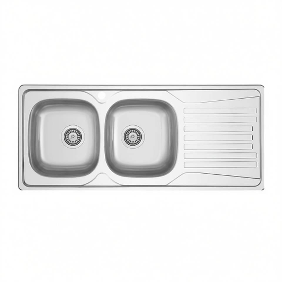 Évier encastré en acier inoxydable 116x50 cm, double bac, égouttoir à droite, évier de cuisine