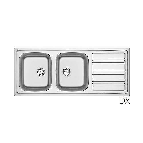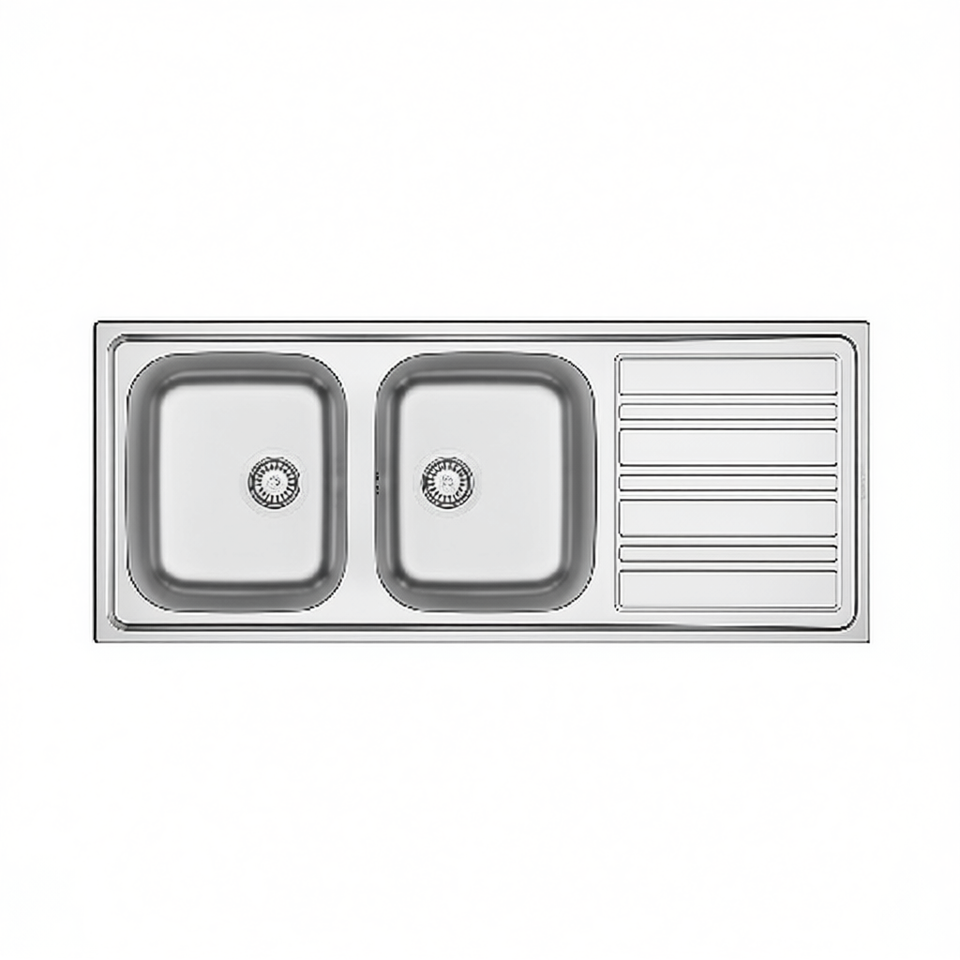 Évier encastré en acier inoxydable 120x50 cm, double bac, égouttoir à droite, pour cuisine