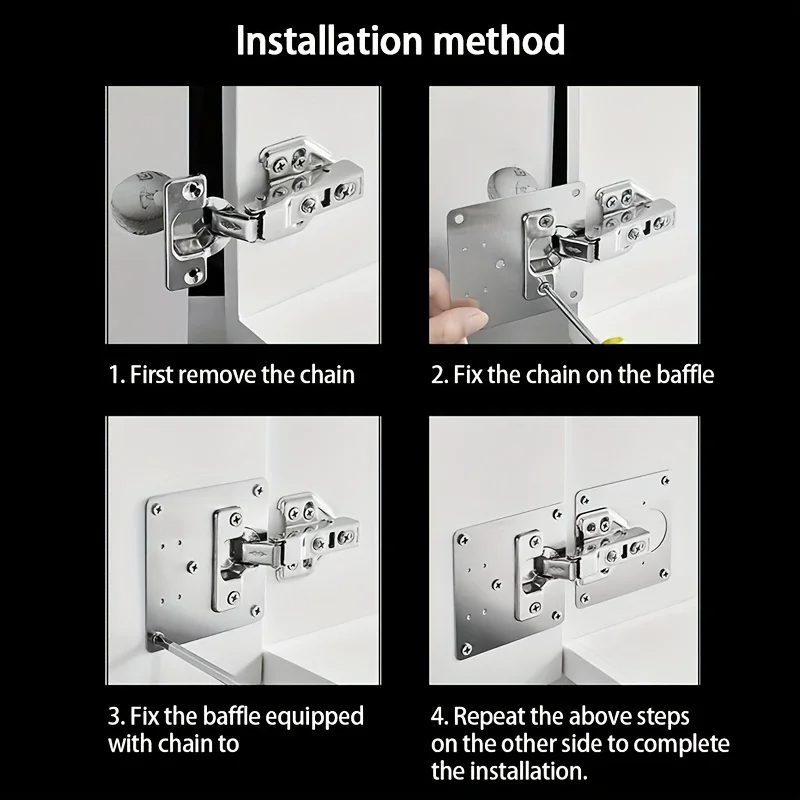 Kit de réparation de charnières de placard en acier inoxydable, fermeture douce, dissimulé, écologique, durable, pour porte de placard de cuisine, avec trous de fixation