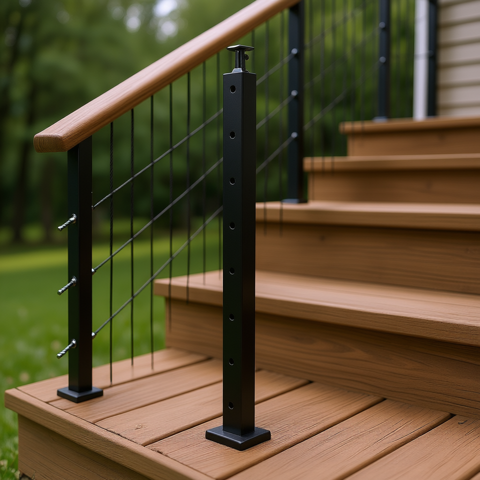 Poteau de garde-corps en câble d'acier inoxydable 36x1x2 pouces pré-percé pour applications de terrasses et escaliers, design industriel noir