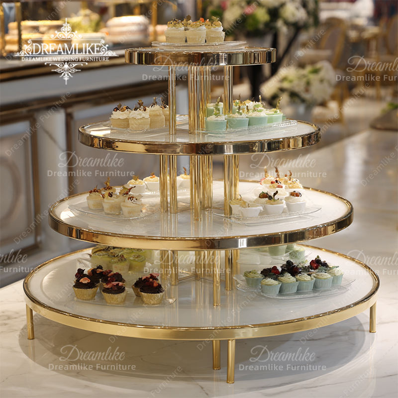 Table de présentation de gâteaux et de desserts en acier inoxydable avec plateau en verre/MDF pour restaurant en plein air, décoration de mariage, hôtel durable